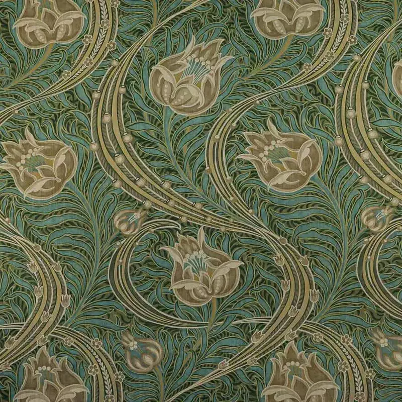 Natuurlijk kan Maison l’Art Nouveau ook alle Morris & Co. stoffen leveren! Die Arts & Crafts motieven zijn ontworpen door William Morris zelf, maar ook door een jongere generatie designers die hij in dienst had. Mijn persoonlijke favorieten zijn John Henry Dearle (1859-1932) en Charles Francis Annesly Voysey (1857-1941).