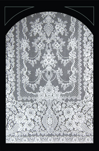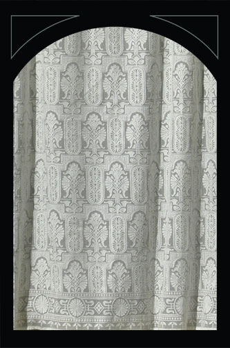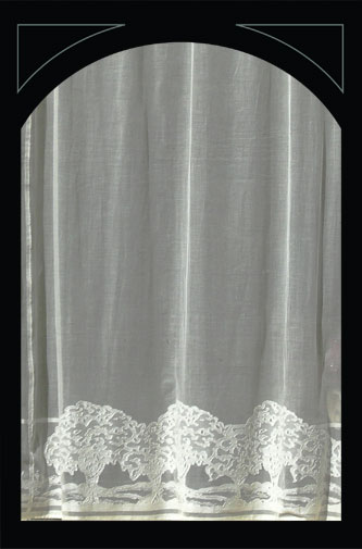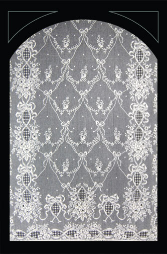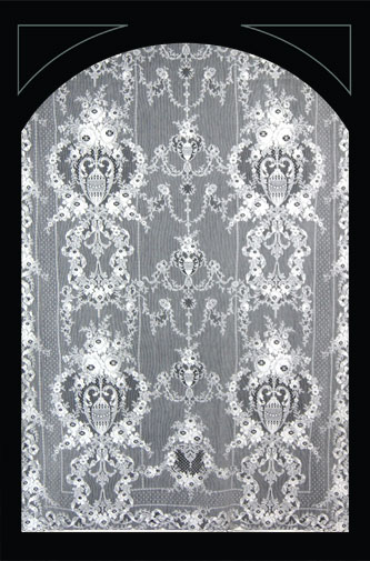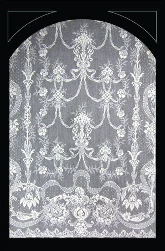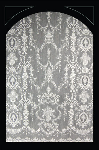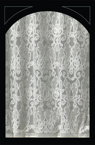 De onderstaande ‘lace panels’, kanten gordijnen, zijn verkrijgbaar in diverse lengtes en breedtes, in wit en ivory. Ze zijn gemaakt van 95% katoen en 5% polyester.